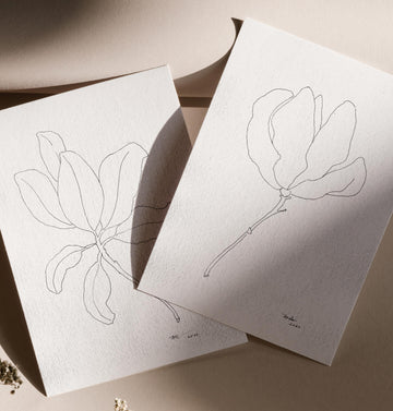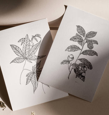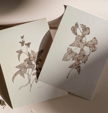 Delicate pen and ink studies that celebrate nature's intricate details, capturing the quiet beauty found in leaves, stems, and petals.