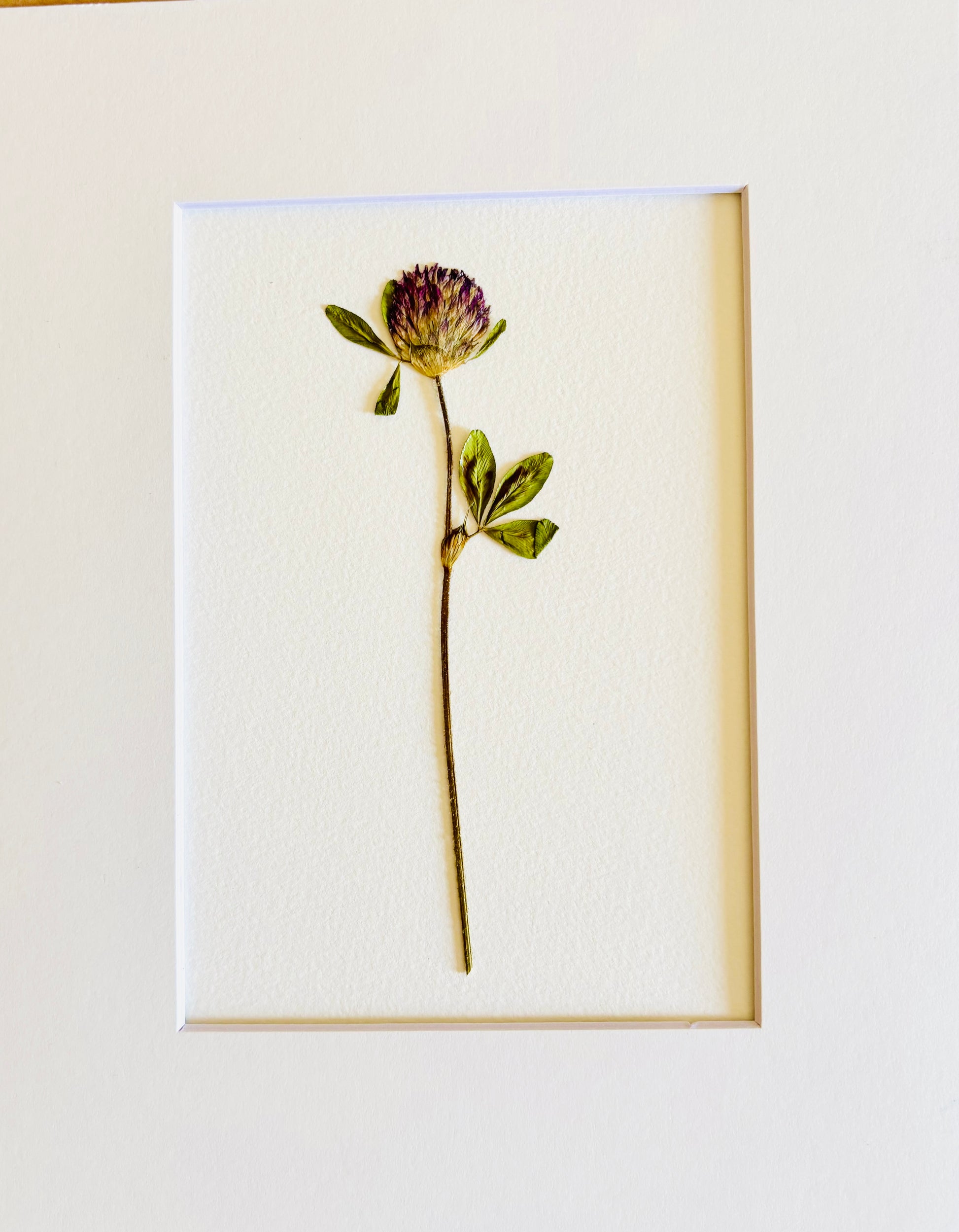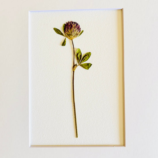 Pressed purple clover stem. Matted in cream
