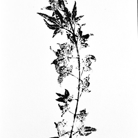 Japanese Maple Branch Ink Transfer Maple branch dipped in ink and transferred onto paper.