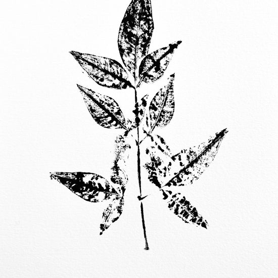 Small Mimosa Branch Ink Transfer . Branch dipped in ink and transferred to paper.